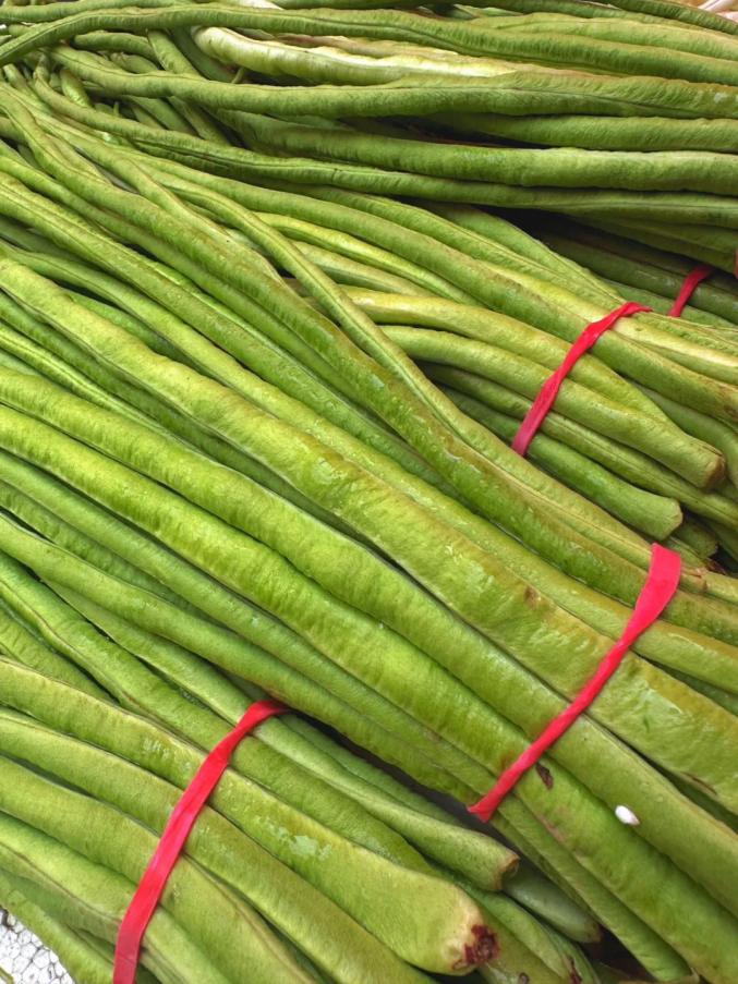 最家常的做法是豆角炒肉,有时是豆角炖排骨;有时是豆角斜切炒肉丝;有时是豆角茄子肉片;可捱个三两天而不腻。蒸豆角,切小段、拌面粉、上笼屉,简单蒸出来,浇上香油蒜泥,人的口腹,就有了鲜美的欢愉。