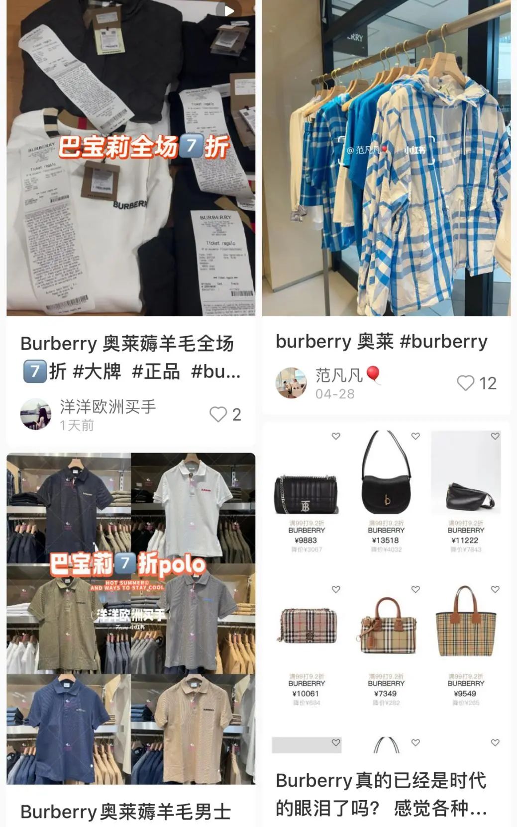Burberry几乎快成了奥莱门面。(图/小红书截图)从短期来看,奥莱店的确能带来不错的收入,但消费者心中是有一套感性的价格体系来衡量商品“值不值得”的。