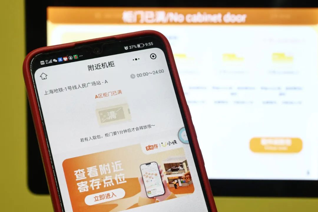 今天一大早,位于人民广场地铁站站厅的3组行李自助寄存柜就已经“全满”了。记者扫码后看到,系统提示“柜门已满”。