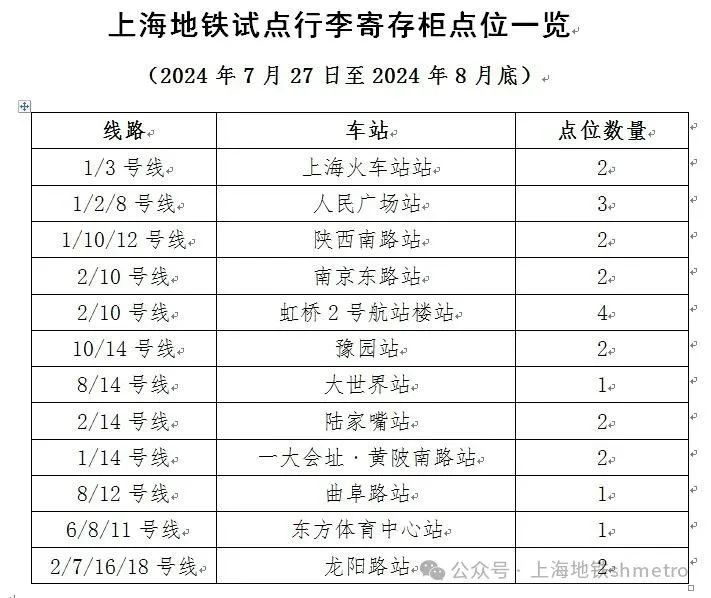 7月27日至8月底为试点期,行李寄存暂不收取费用,提供单次8小时行李免费寄存服务。使用该服务的乘客根据小程序操作,需先支付20元押金,行李寄存服务结束后押金将原路退还。市民游客可通过“小铁寄存柜”或“丰巢”小程序,自助进行寄存服务。试点期间,提供不超过8小时的免费寄存服务。对于单次行李寄存超过8小时或跨日寄存的物品,寄存服务方的客服人员将联系乘客,并根据实际情况对超时寄存物品做出相应处理。