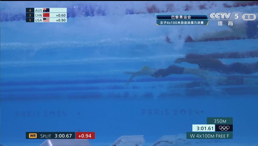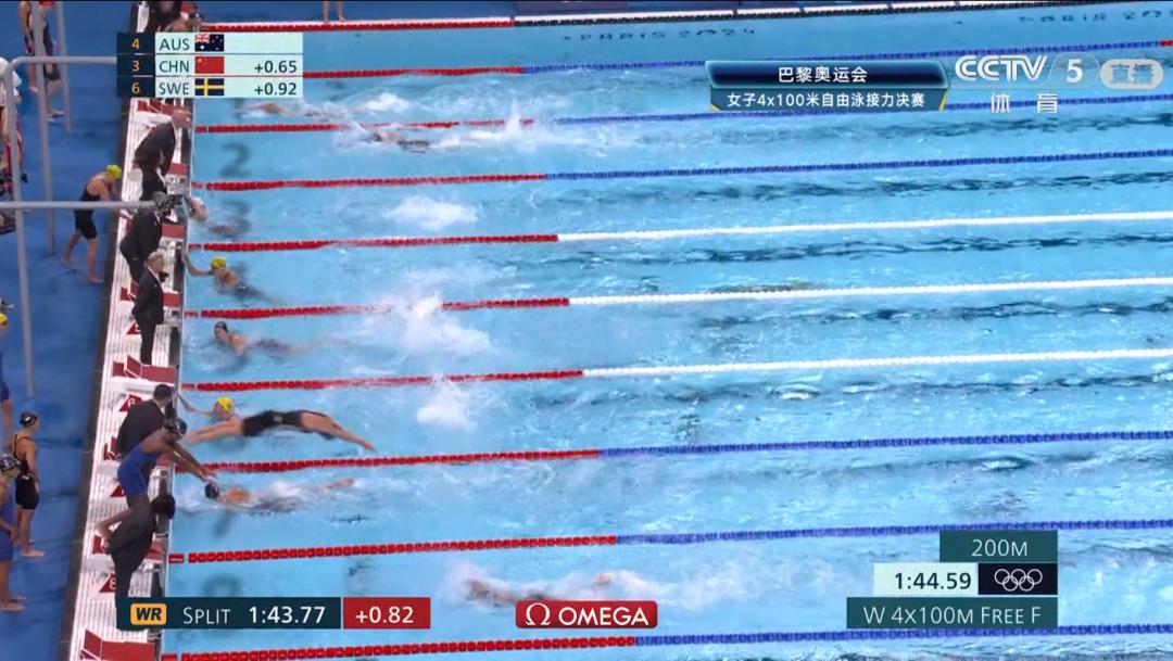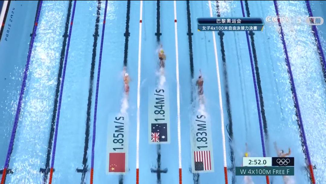 第三棒张雨霏奋力追赶!50米之后落后0.68秒