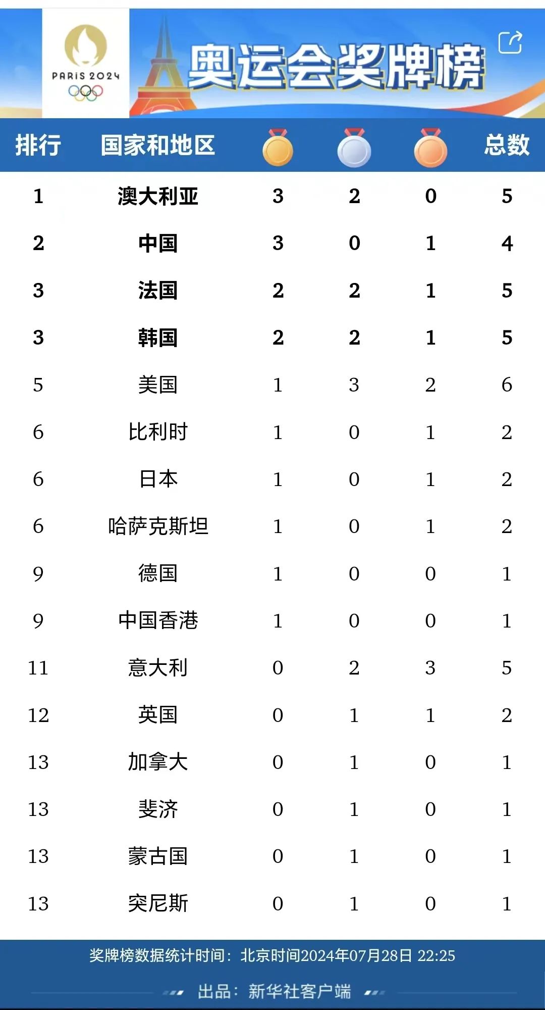 谢瑜获中国队第3金北京时间28日下午,在法国沙托鲁举行的巴黎奥运会射击男子10米气手枪决赛中,中国选手谢瑜获得冠军。这是中国体育代表团在巴黎奥运会中取得的第3枚金牌,也是中国射击队在本届奥运会中获得的第2枚金牌。详情:谢瑜,摘金!