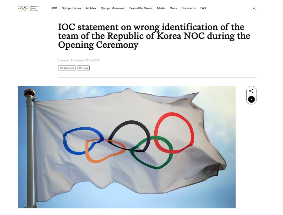 当地时间28日,国际奥委会在其官方网站发布声明,就奥运会开幕式上将韩国国名叫错致歉。