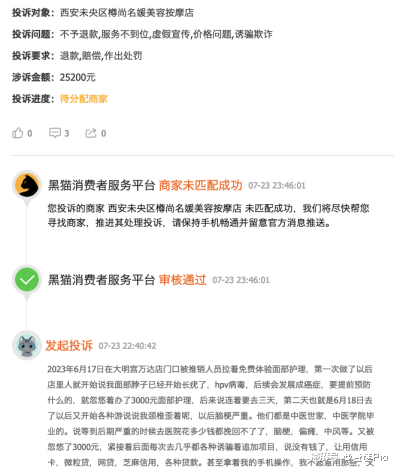 足疗按摩主要卖的是服务,很难做到标准化,行业问题也不少。在黑猫投诉平台上,与“按摩”相关的投诉达到了7628条,其中投诉最多的,便是强势推销、诱导充值、拒绝退费,一些商家甚至会强制消费者贷款办卡。