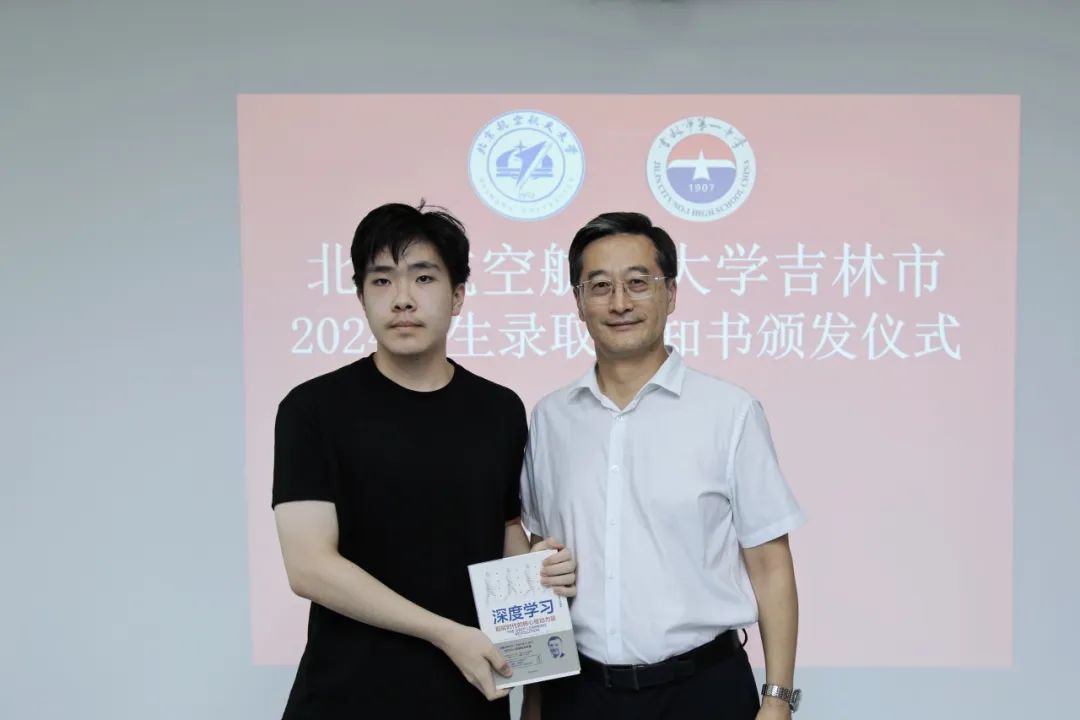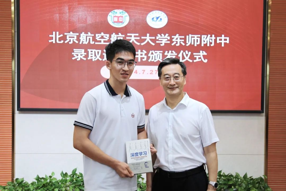 仪式上,王云鹏为28名新生代表逐一颁发了2024年本科新生录取通知书,并赠送《深度学习》一书,勉励同学们提升学习能力、探索实践创新、培养个人兴趣,绘就属于自己的精彩人生。