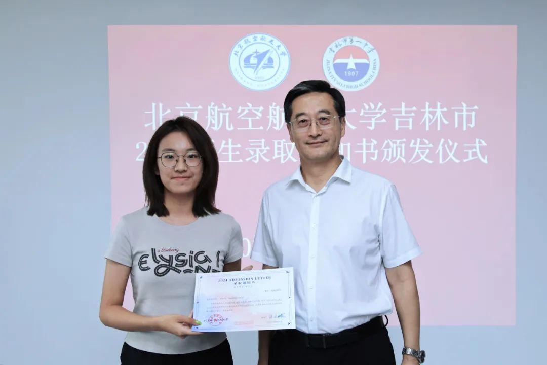 吉林一中校友代表、北航2024届本科毕业生、2024级研究生新生于千惠发言,畅谈了自己在北航的学习和发展经历。
