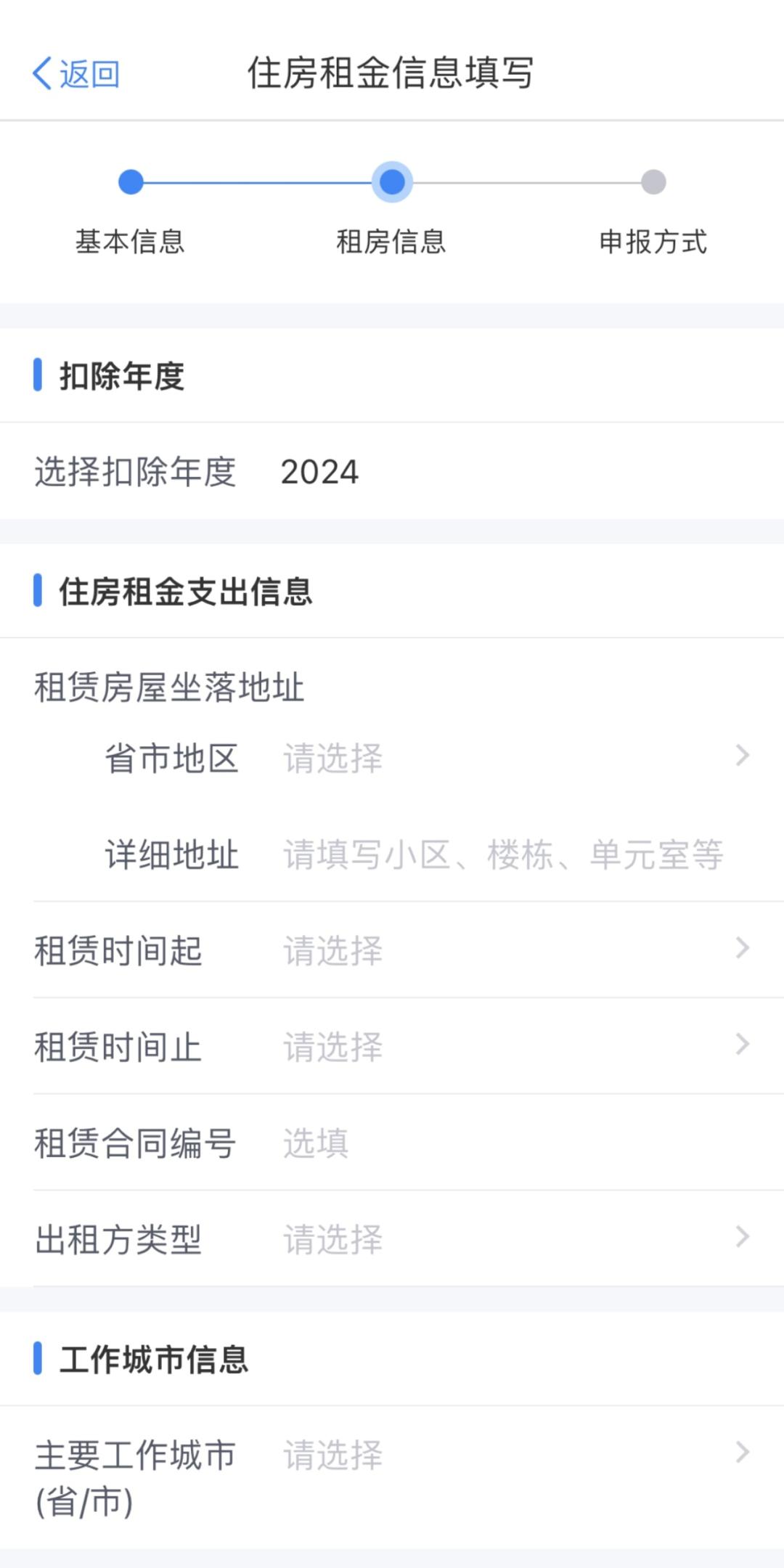 纳税人在主要工作城市没有自有住房,发生住房租金支出。