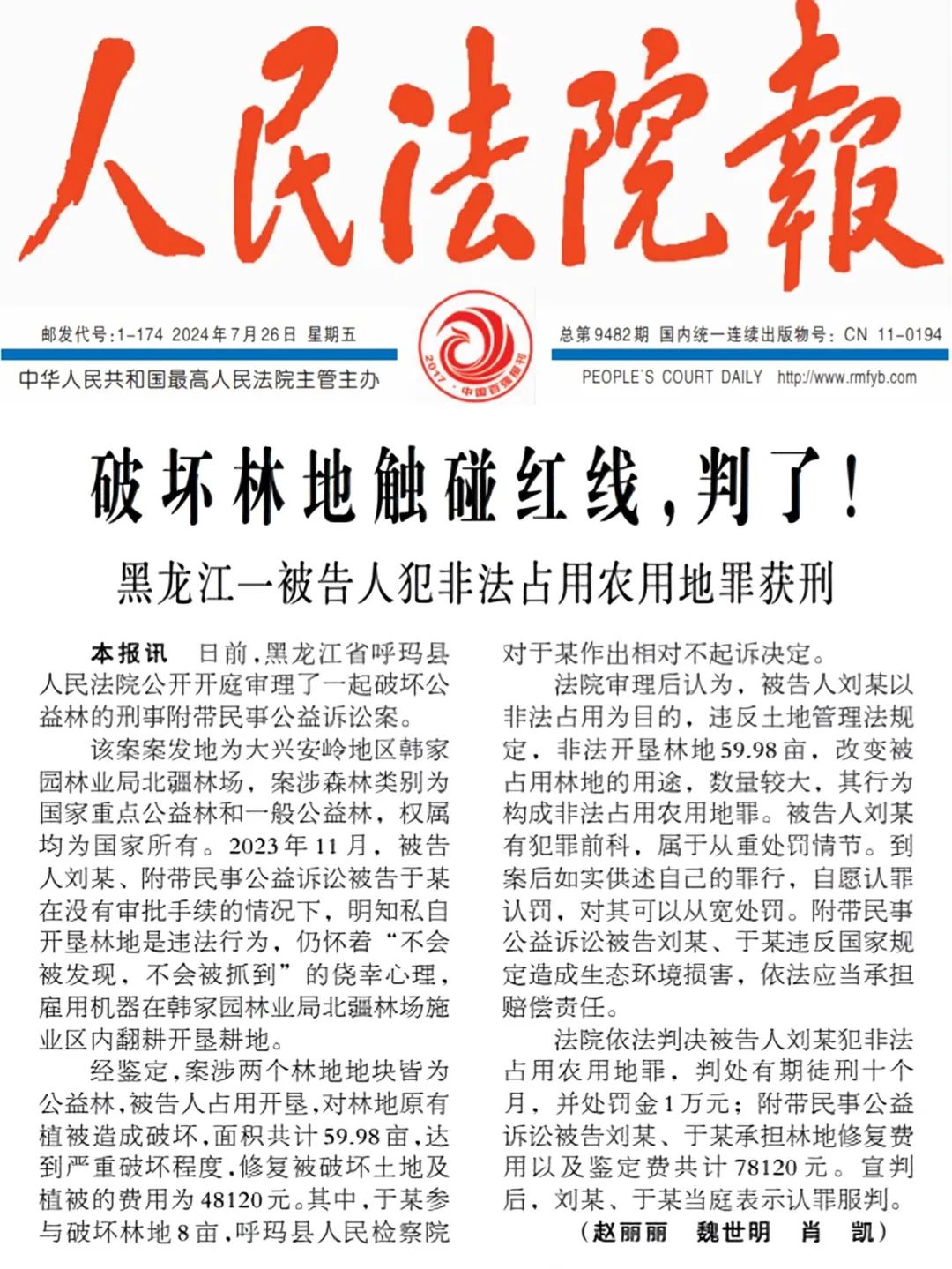 《人民法院报》破坏林地触碰红线,判了!