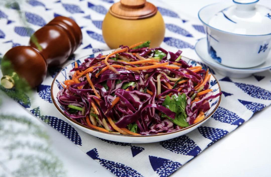 口感爽脆,营养保留也较为全面,还能起到更好的抗炎效果。可以将紫甘蓝洗干净后,切成细细的丝直接凉拌着吃。