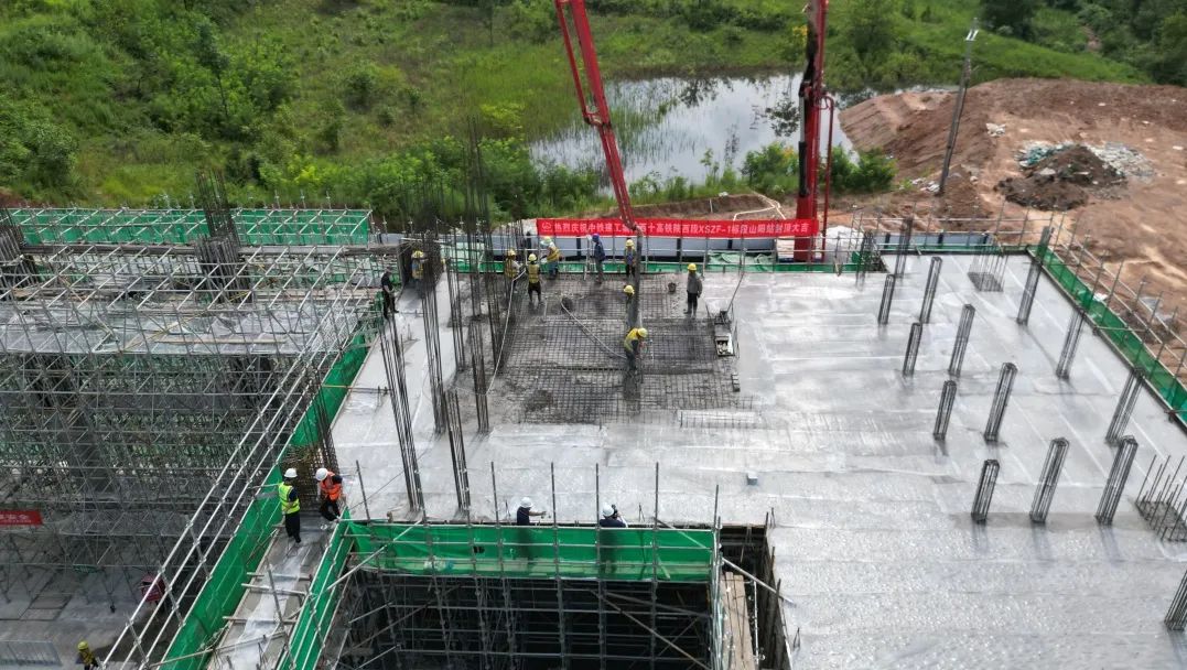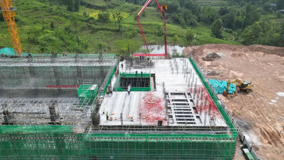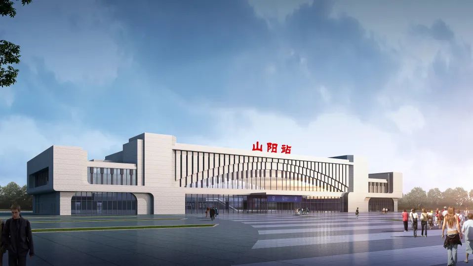 山阳站于2024年4月3日正式开工建设,5月19日完成地下室混凝土结构施工。7月28日站房主体结构封顶,正式进入二次结构、钢结构工程施工。