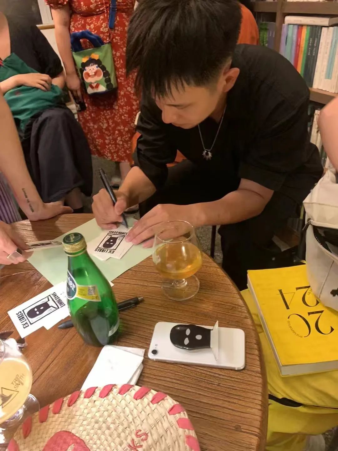 △辩论会结束后,签藏书票记者:哈哈,充分感受到你的“书店之爱”了。你刚也说了你也写其他题材,比如《爸爸从罗布泊回来》,这篇有科幻色彩,但显然这一位也不是一位合格的爸爸,联系小说集里其他小说,就如作家张怡微所说:“出走的男性都是异世界悬浮的符号”,为什么会这样设定?