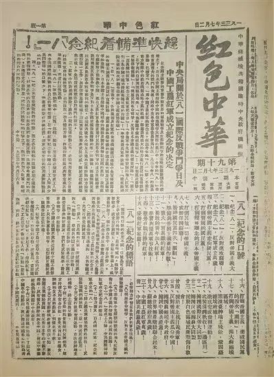 1933年7月2日,《红色中华》刊载《中央局关于“八一”国际反战争斗争日及中国工农红军成立纪念的决定》1927年8月1日,中国共产党领导发动了南昌起义,打响武装反抗国民党反动派的第一枪,宣告了中国共产党人不畏强暴、坚持革命的坚定决心,标志着中国共产党独立地领导革命战争、创建人民军队和武装夺取政权的开始。从此,“八一”这个响亮的字眼具有了特殊意义,这个日子被确定为人民军队的建军节。回顾历史,“八一”建军节的确立并非一蹴而就,而是经历了一番周折。