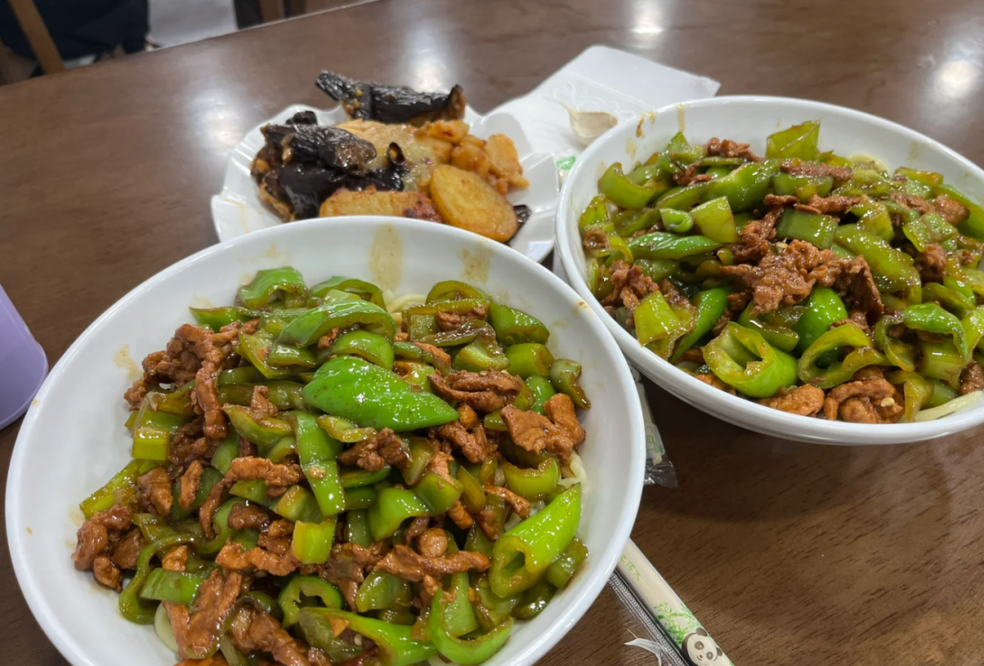 大厨面馆,这家尖椒肉丝面被网友们称之为“临沂老网红”了,手擀面扎实,尖椒肉丝面是属于拌面的那种,切大块的尖椒和肉丝炒在一起,油油润润的直接浇面上,全部拌在一起,剥上一瓣蒜,大吃一口,直接香拽了!