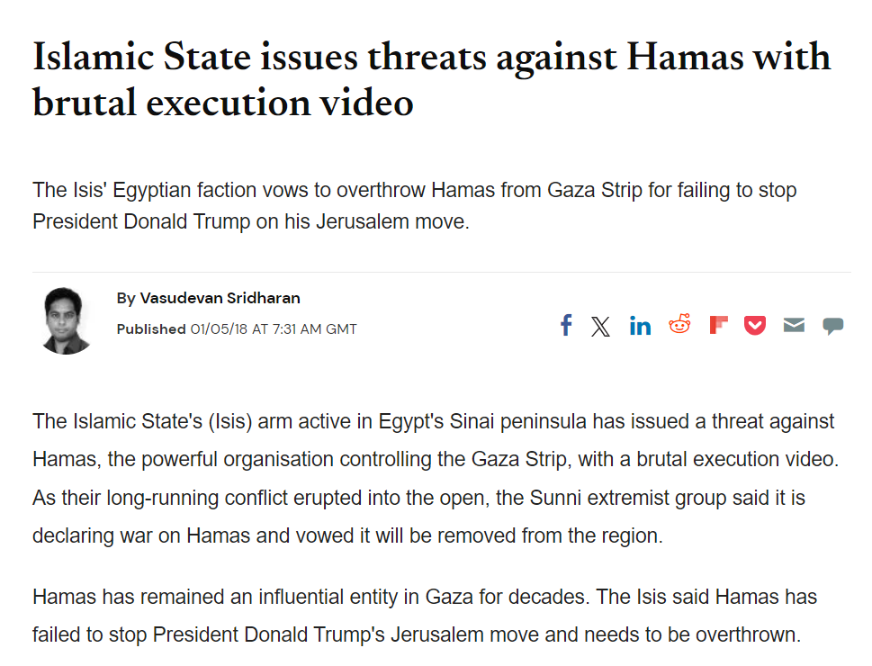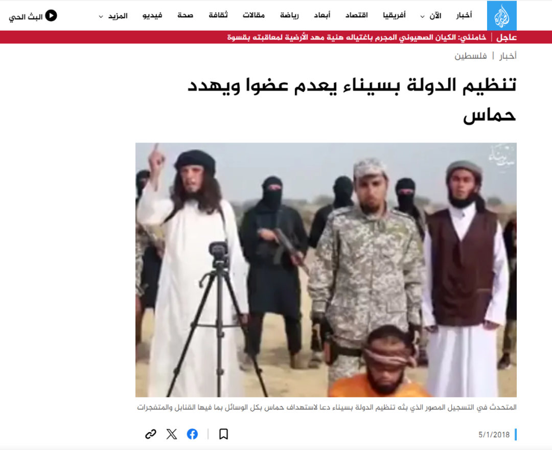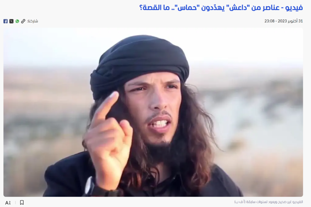 2023年10月31日,阿拉伯语媒体almashhad就网传“‘伊斯兰国’西奈分支威胁哈马斯”一事发文澄清。