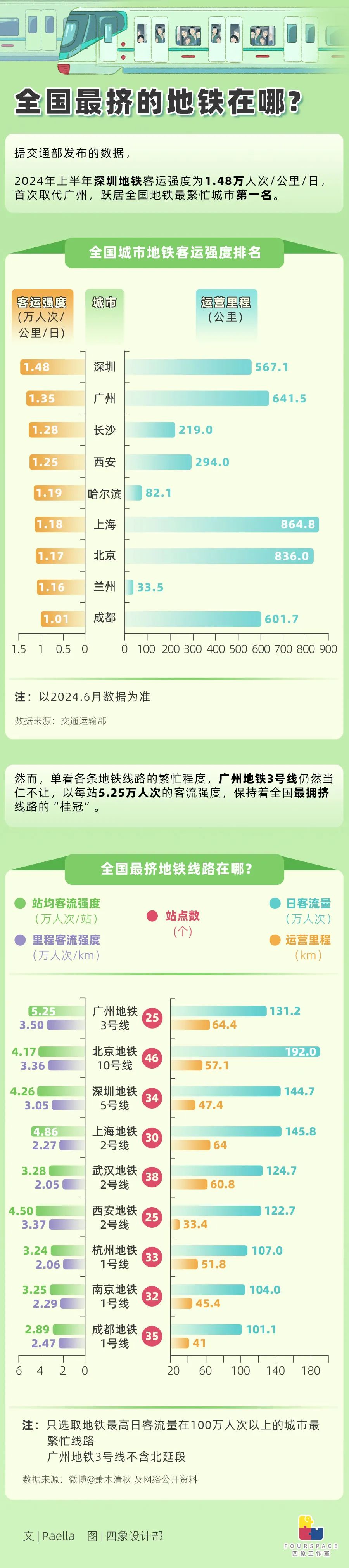 深圳地铁到底有多挤?全国最挤的线路又在哪个城市?你所在的城市地铁能排到第几?让我们用数据来直观地感受当下城市轨道交通的人潮涌动。
