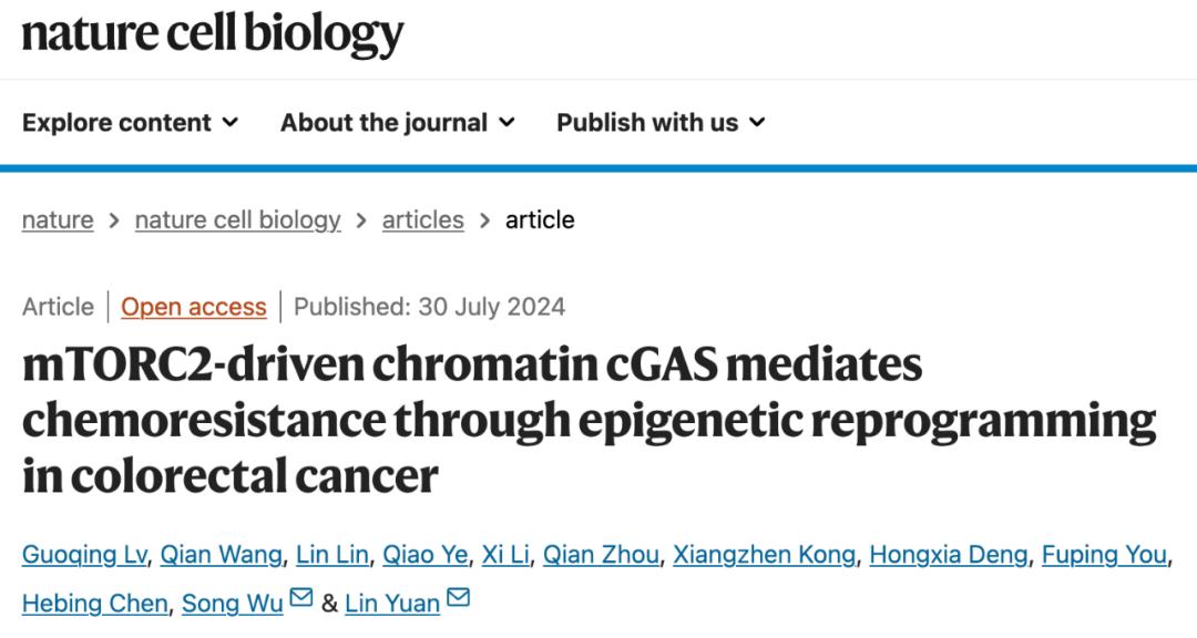 Nature子刊:袁林/吴松团队揭示mTORC2-cGAS通过表观遗传重编程介导结直肠癌的化疗耐药