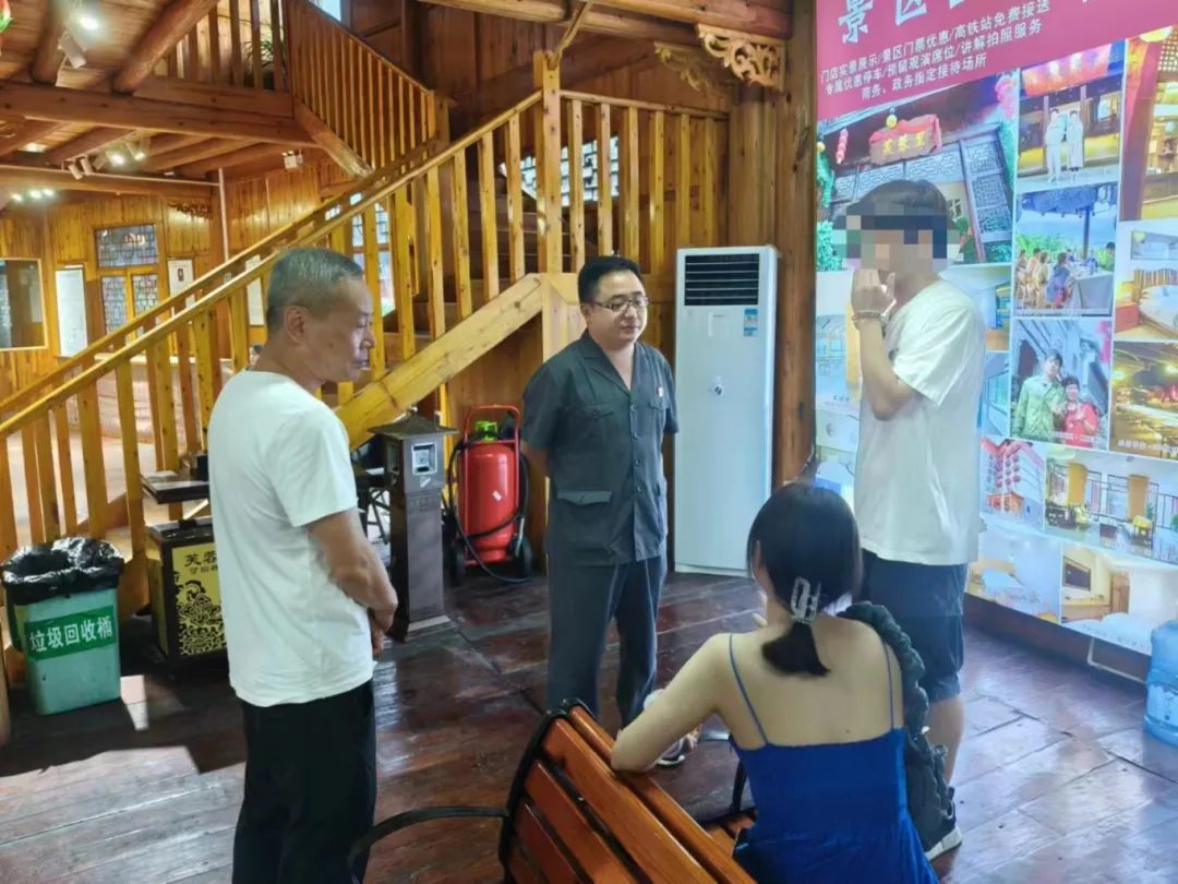 “李庭长,景区有游客发生肢体冲突了,请法庭前往现场指导调解。”2024年7月30日晚上6点,正准备下班的永顺县人民法院芙蓉法庭庭长李石蕴接到了景区调解室工作人员的电话,放下电话他立即赶往现场开展调解工作,仅用1小时便成功化解了这起因游客插队引起的纠纷,既化解了双方当事人的矛盾,也维护了芙蓉镇景区的治安秩序,得到了群众的一致好评。原来,游客张某在芙蓉镇景区游玩时,因排队问题与李某发生言语争执,继而矛盾升级为肢体冲突。景区调解室知悉后,立即邀请芙蓉法庭庭长和河畔社区工作人员前往现场进行联合调解,调解队伍先将矛盾双方分开,一边安抚当事人激动的情绪,一边进行释法说理,同时也指出了双方不对之处,一番耐心调解后,双方当事人也意识到了自身的问题,最终握手言和,一起矛盾纠纷就此化解在原地。