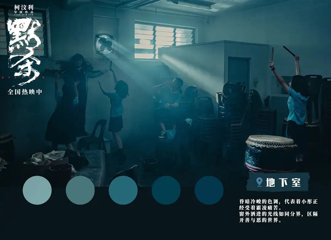 《默杀》这个故事很重要的是,我想让这个事件“被”看到。但是他必须是有一个主体去笼罩着他的,所以我们选择了一个有穹顶的室内空间。这个秘密是不能直接摊开在阳光底下的。它必须得经过一层一层的设计。所以我会从林在福的经历反推他的作案方式:应该也要一样的效果,因为他也要霸凌他女儿的凶手尝到一样的滋味。
