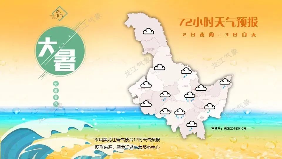 8月1日夜间到2日白天:哈尔滨北部、佳木斯西部、牡丹江北部阴有大雨,大庆南部、绥化、哈尔滨南部、伊春南部、佳木斯东部、七台河、鸡西、牡丹江南部阴有中雨,大兴安岭、黑河北部、齐齐哈尔北部多云,其它地区有阵雨或雷阵雨。
