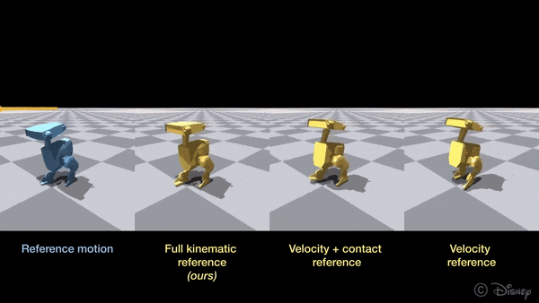 研究人员让BD-X机器人通过强化学习的方式掌握了多种控制策略,分别针对上述3种类型的动作。