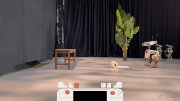 ▲BD-X通过控制器实现灵动的动作(图源:迪士尼)在虚拟训练结束后,神经控制策略的权重被冻结,策略网络被部署到机器人的机载计算机Jetson上。部署后的控制策略和低层次控制器直接与机器人的硬件交互,还能融入惯性测量单元和执行器的测量数据。