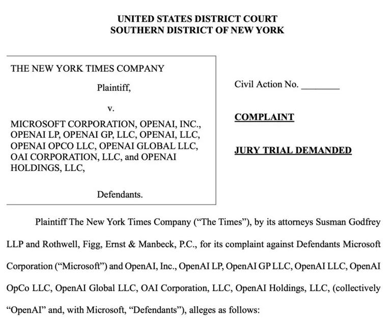 AI创作引发的争议是全球性的。2023年12月,《纽约时报》披露,其已经对微软和OpenAI发起诉讼,后者未经许可使用“数百万篇”版权文章训练Copilot、ChatGPT背后的AI模型,以打造替代产品。此案仍然在审理中,而AI的发展对原创作品版权及其作者造成的潜在威胁,是人类无法回避的问题。