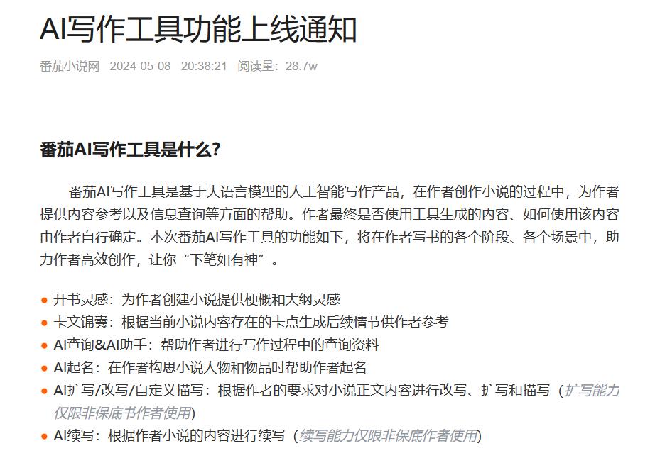 AI写网文,作者和读者双输?AI与网络文学创作结合的例子,不只是番茄小说一家。