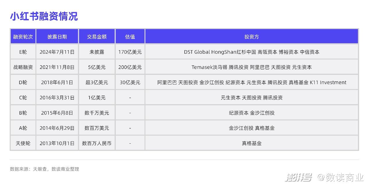 本月,有媒体报道称,小红书最近数周安排了向现有股东及新投资者出售股份。获得了DST Global入股,红杉中国、高瓴资本、博裕资本和中信资本加码投资,最新的估值170亿美元。