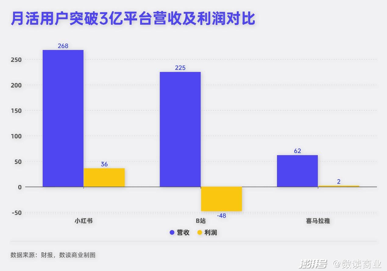 按照营收规模和用户量来测算,小红书与B站基本上是同一体量,盈利能力则是远超B站。这符合公众的整体印象。长久以来,小红书用户的商业价值都是远高于B站、知乎和微博。