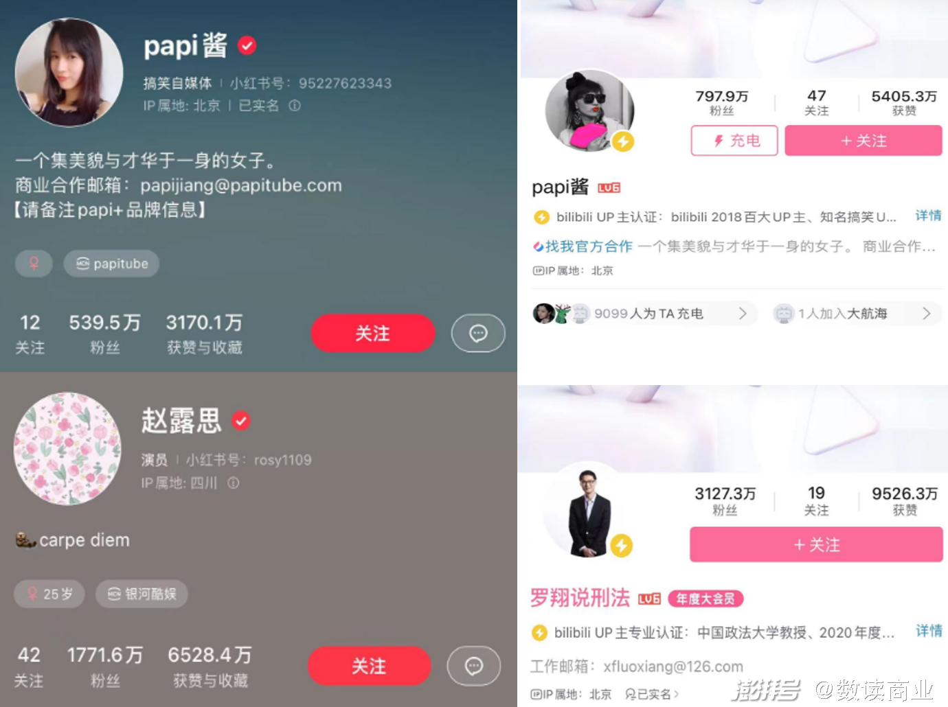 这更多是一种曲线救国。虽然2020年就已布局直播带货,但是小红书的动作并不快。虽然拥有超过3亿用户,但时至今日,小红书独家的出圈创作者并不多,各大平台都拥有认知度的大V,在小红书的影响力也并不算大。比如papi酱,在小红书的粉丝不到540万,甚至不如B站的约800万。小红书粉丝量最高的赵露思,不到2000万,而B站罗翔则超过3000万,值得注意的是,罗翔是B站出圈的,而赵露思本身就是明星,并非小红书捧红。