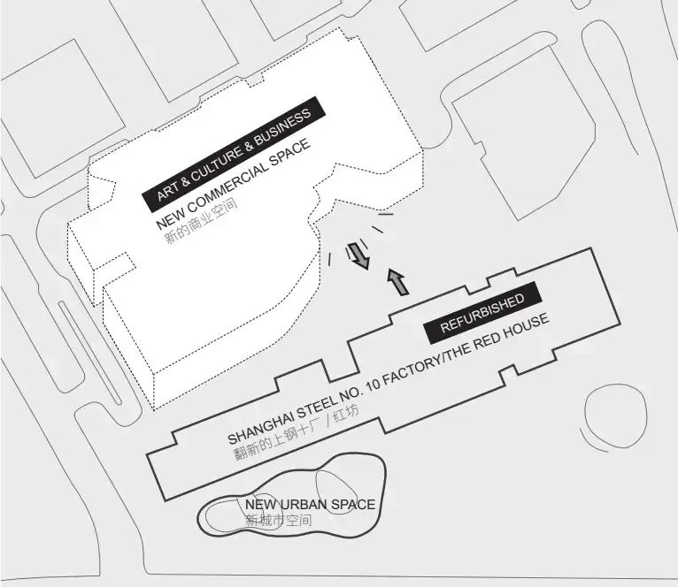“红坊”被赋予了新的商业定位,目标为打造集城市艺术、自然生态、商业消费、商务办公于一体的综合体项目,包括约10万m⊃2;的办公楼、约4万m⊃2;的购物中心、使用面积约3500m⊃2;的ROJO艺文空间和约1400m⊃2;的西泽立卫建筑作品,以及代运营管理的6000m⊃2;开放式绿地。