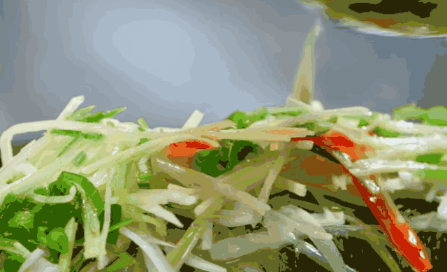 轻轻淋油,点缀细丝之翠,更添几分赏心悦目的美。