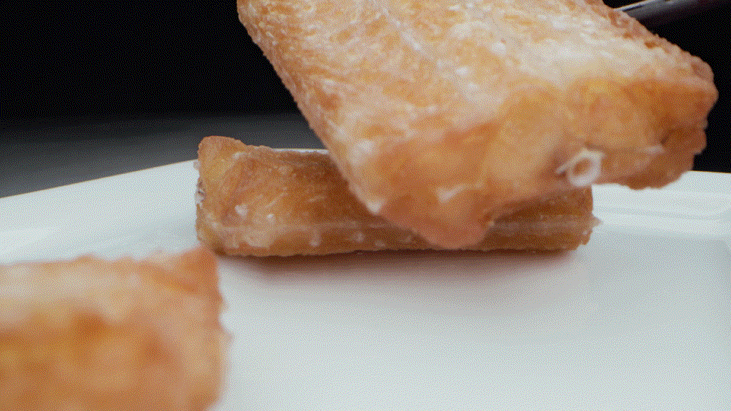 “滋啦滋啦”炸开的油锅,让带鱼金衣加身,香得诱人。切成小段的它,两侧的骨头被炸酥,轻轻顺着边缘一扯,就能去掉一整条。雪白的鱼肉露出,丝丝缕缕,鲜香不绝。口腔就是鲜美的另一片海域,大海的味道全数收入嘴中,滋味实在太美。