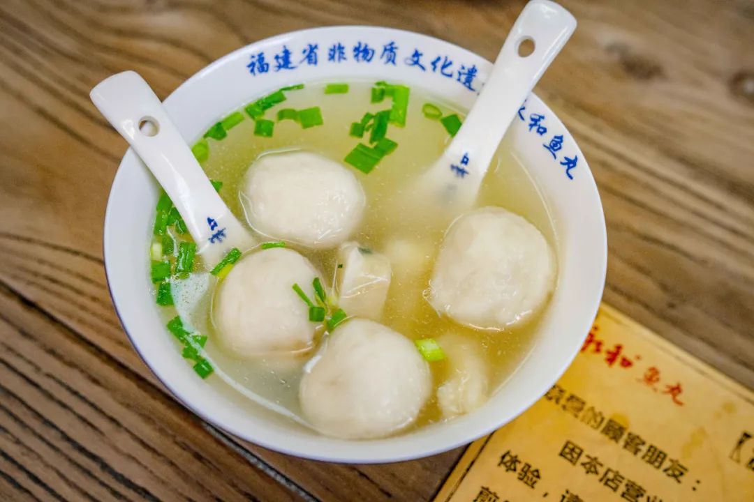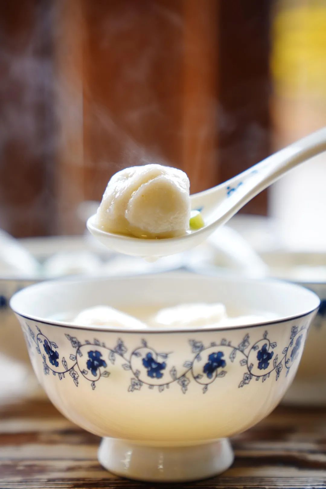 除了直接用鱼熬汤,还可以做成鱼丸汤。靠海吃海的福建,福州人将鱼剔骨刮茸,包以猪肉馅心,捶打捻指之间,塑造嫩滑弹鲜会爆汁的口感。入口不觉得有纤维,极细,而有弹性。