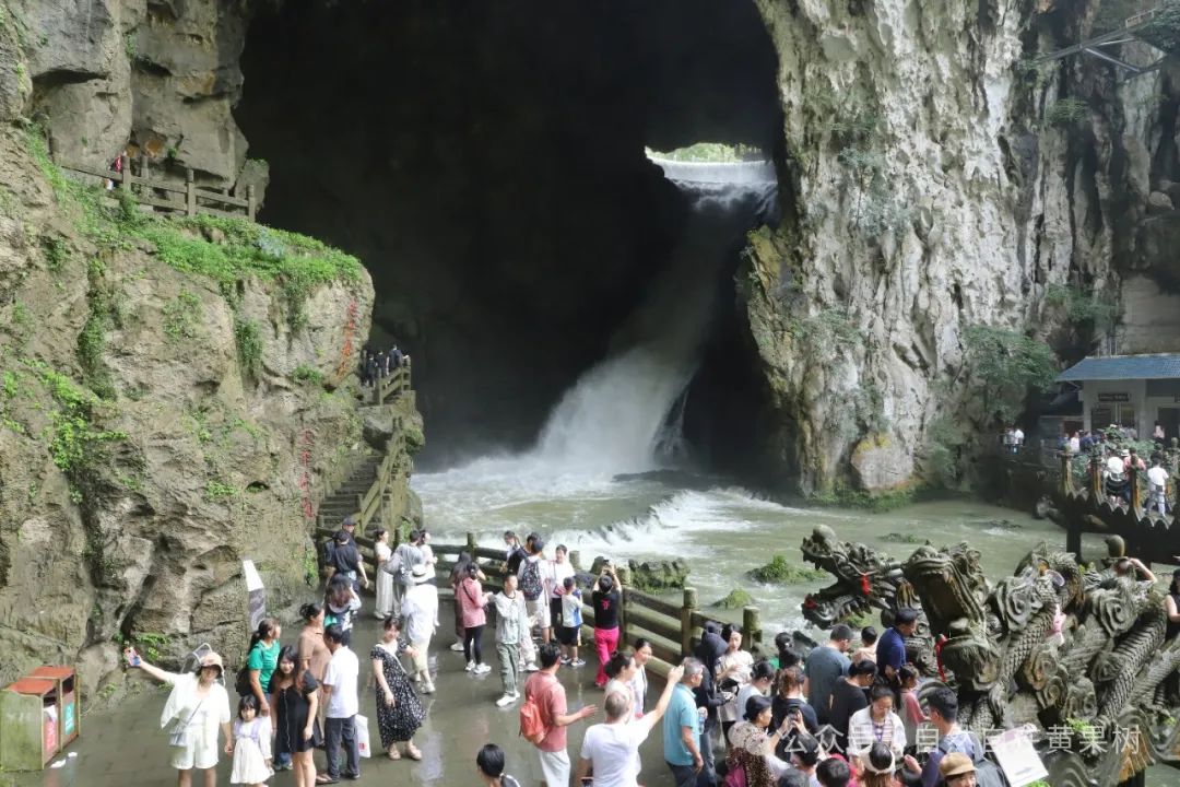 虽然天空下着小雨,游客热情依然不减,无论是“天下第一瀑”的龙门飞瀑,还是溶洞乘船点等地,游客纷纷驻足拍照、有序乘船。