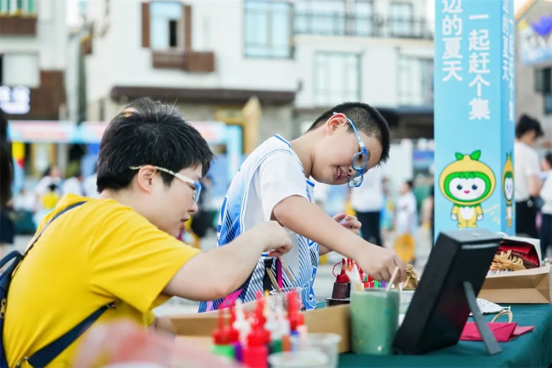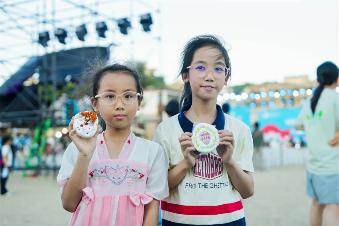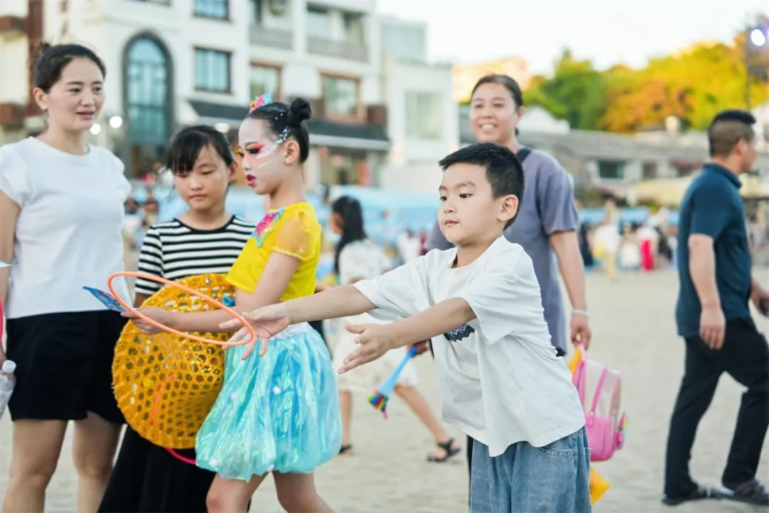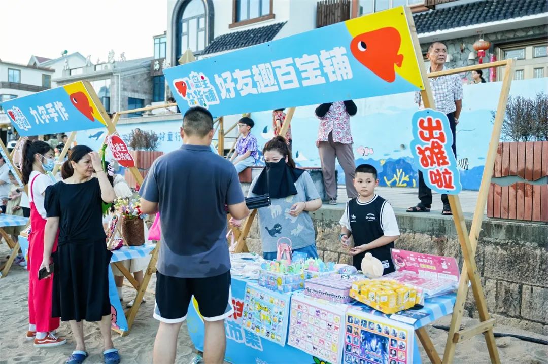 在主会场的一旁,海洋拾光童玩市集也清凉启航。主办方提前发出450份体验券,被热情的市民一抢而空。活动当晚,亲子家庭欢聚海滩,“集市”行乐,“摊”玩不停!