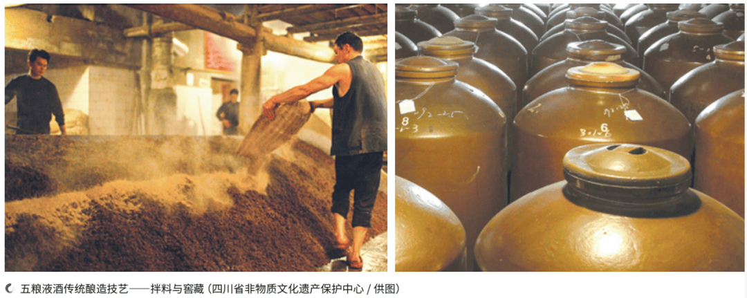 文化遗产包含物质和非物质两个内容。作为一项区别于世界其他酿酒工艺的悠久传统技艺,川酒传统酿造包含丰富的文化遗产因素,它们贯穿于中国酒业传统酿造的工艺流程和文化空间。按酒业界常规认识,川酒传统酿造技艺按制造工艺可划分为酿造酒、蒸馏酒和配制酒三类。