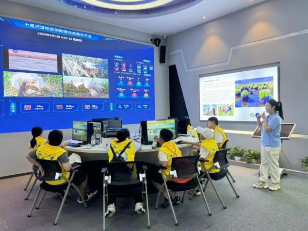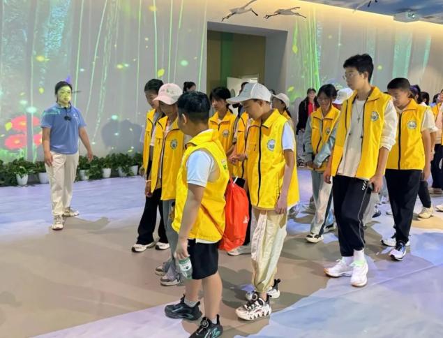 七星河湿地独特的地理环境孕育了丰富多样的动植物物种,为无数珍禽灵鸟创造了优越的栖息环境,也为“湿地主题研学”提供了广阔的探索空间。在湿地自然教育师的带领下,研学少年们先后倾听了《湿地智慧课堂》和《印象七星海》两节课程的讲解与深入实操体验。