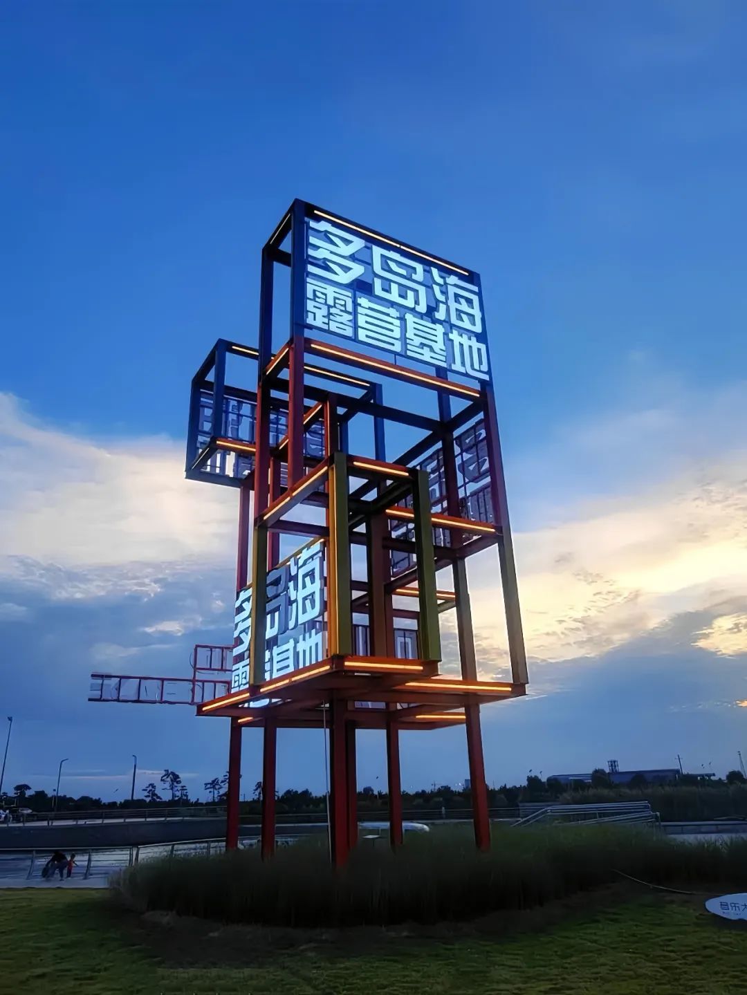 「多岛海露营基地」依山傍海,露营基地以“睡在海上”为主题,为露营爱好者们打造了一处别具一格的休闲胜地。