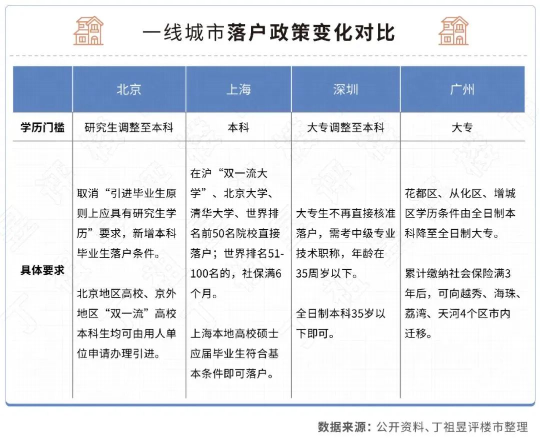 不难看出,除了北上广深津之外,其他城市均不乏放开乃至零门槛落户的可能。
