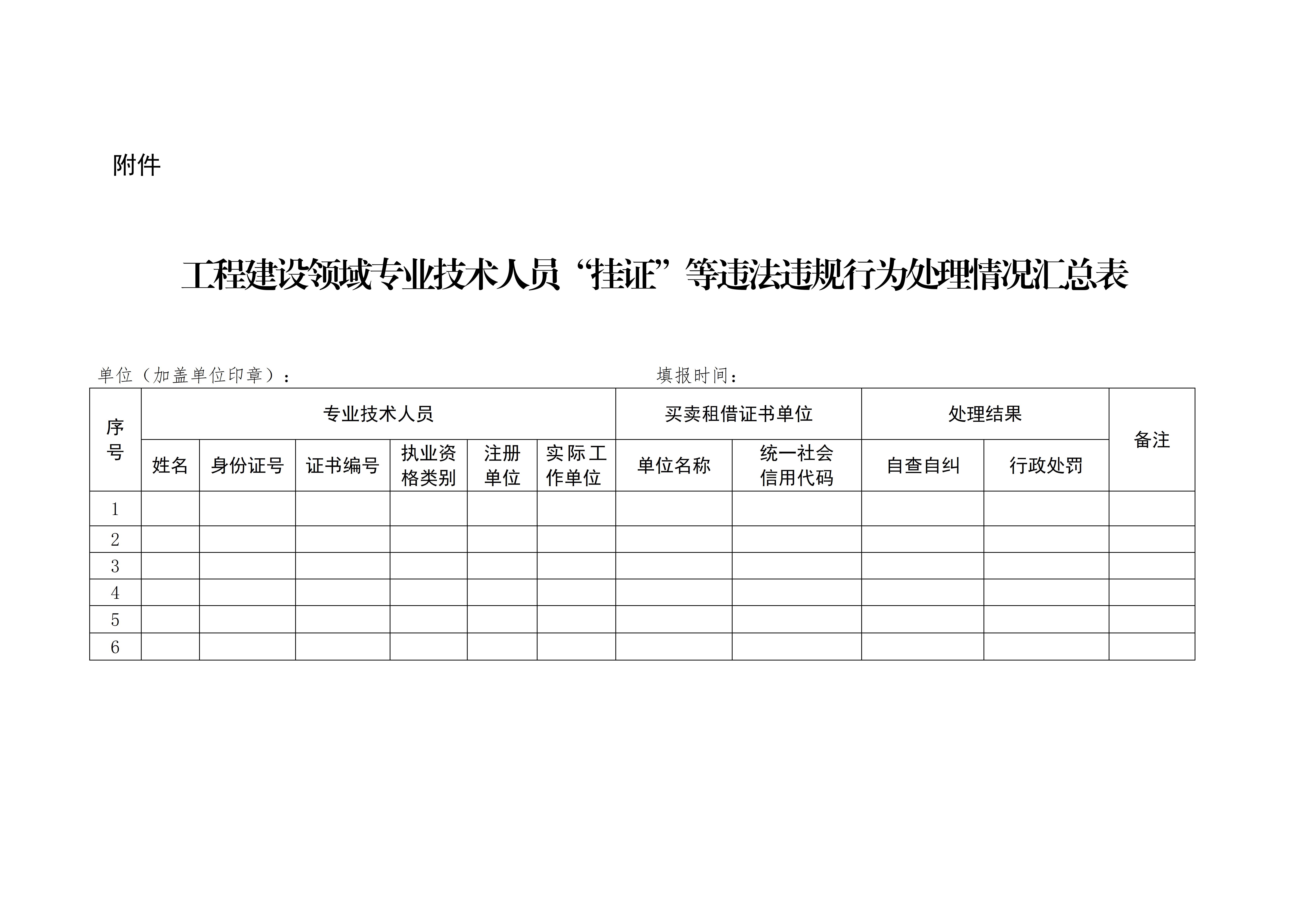 附件:工程建设领域专业技术人员“挂证”等违法违规行为处理情况汇总表