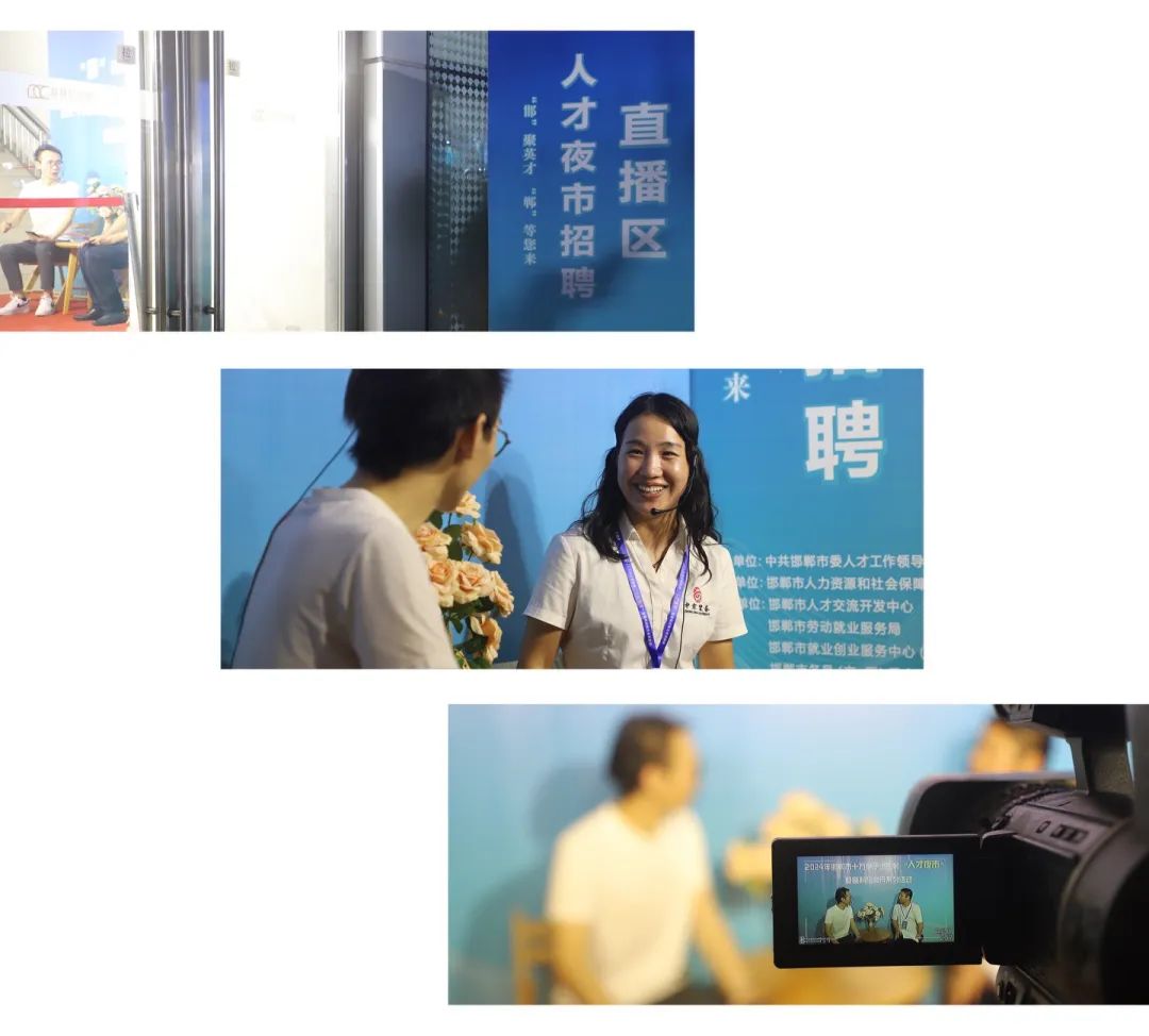 活动现场设置了政策咨询台安排人社业务骨干向群众提供邯郸人才政策的咨询服务,搭建起一座连接政策与需求的桥梁。将“高大上”的政策摆在“地摊”上,放在人才身边,吸引了大量人群驻足咨询。帮助他们答疑解惑,让求职者们感受清凉夏夜,也能了解到“留才”“引才”的诚意和温度。解码直播招聘“新势能”