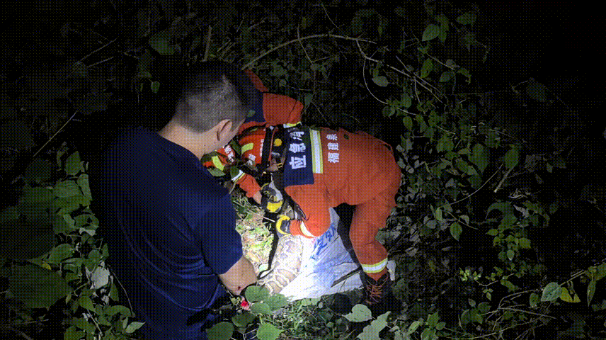 到场后消防员在报警人的指引下在一处山沟的灌木从中