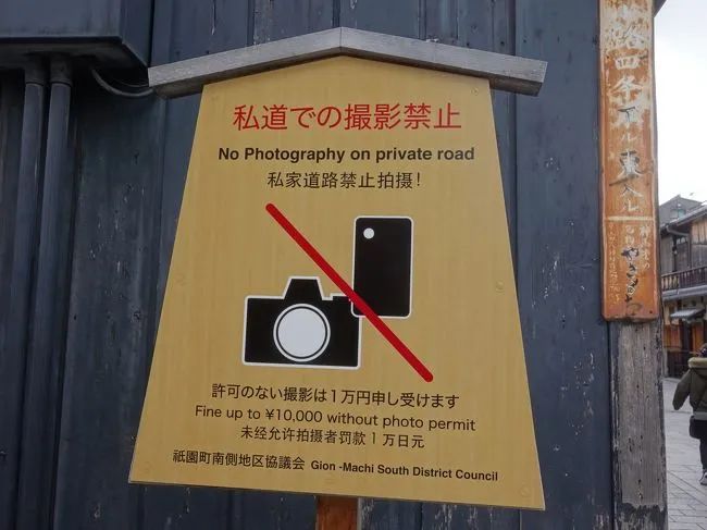 2019年10月,由于一名艺伎的衣服被撕破,另一名艺伎的衣领被塞上烟头,日本出台了禁止拍照的禁令。© フォートラベル在祗园居民对他们所谓的“不守规矩的游客”提出投诉后,当地政府被迫采取行动,实施了一项旅游禁令,该禁令于今年早些时候生效。“京都不是主题公园,”当地议会表示。非法闯入私人领地者,罚款最高可达10000日元,约合64美元。