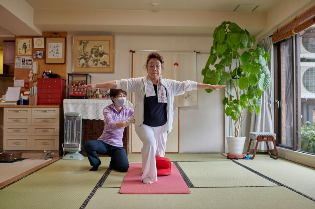 82岁的赤坂育子(Ikuko Akasaka)是日本仍在工作的年长艺伎之一,她已经从事了64年的高难度传统表演艺术。图为她和教练在一起练习。© Noriko Hayashi---