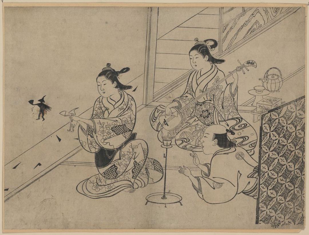 两位艺伎正在招待一位男士。西川祐信(Nishikawa Sukenobu)。© Library of Congress文/Julia Shiota