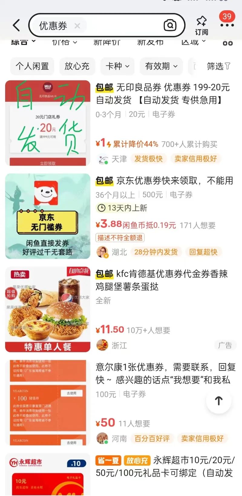 餐饮、酒水、滴滴等APP的优惠券以及视频网站会员、健身卡等,在二手平台上也是抢手商品。95后小周是麦当劳的常客,购买的优惠卡每日享早餐六折,“早餐卡包含的点餐免外送费对我而言是闲置的,有时候我会代下单付款,低价将优惠转让给其他有需要的人。”小周告诉记者,闲鱼上还有很多下午茶、电影等代金券的二手交易,深受年轻人喜爱。
