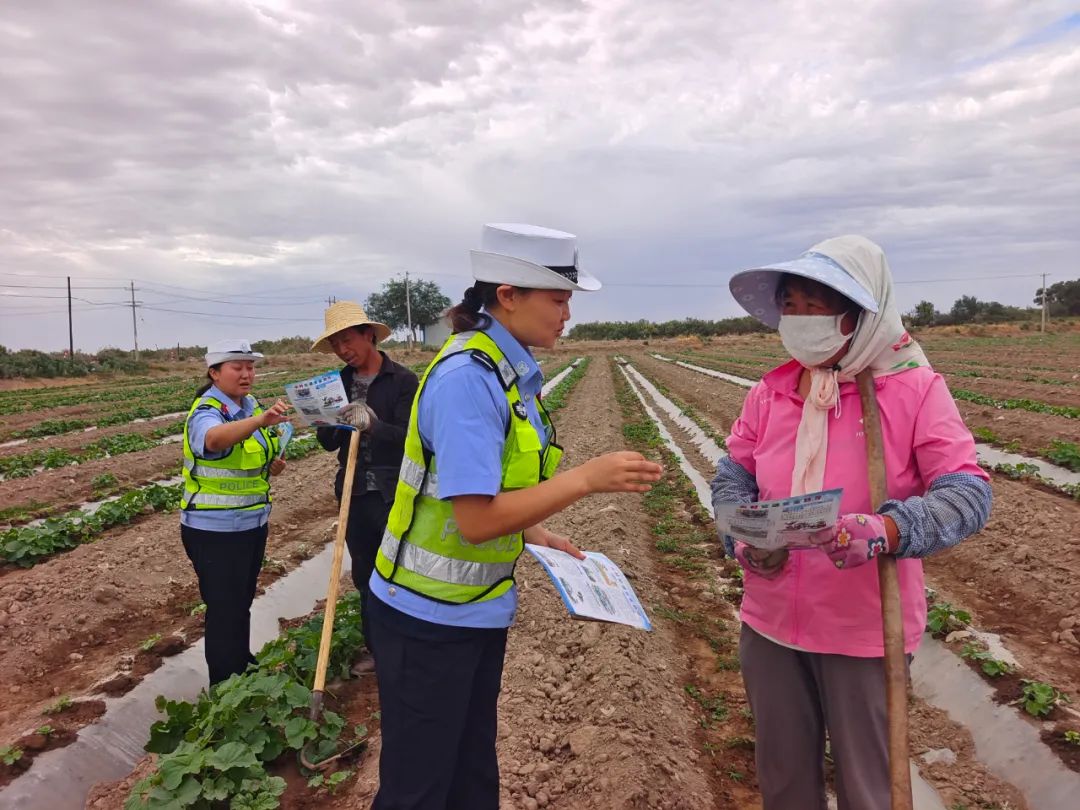 紧盯农忙时节,安全常识入人心结合当前盛夏务工务农繁忙实际,民警深入田间地头、务工务农人员集中地,通过现场宣讲、发放宣传资料、张贴横幅等方式,向广大群众宣传如何文明出行、安全乘车、非机动车安全行驶等交通安全常识,引导广大群众日常出行时遵守交通法律法规,提高安全意识,杜绝乘坐农用车、超员车、无牌无证车等,保障自身出行安全。