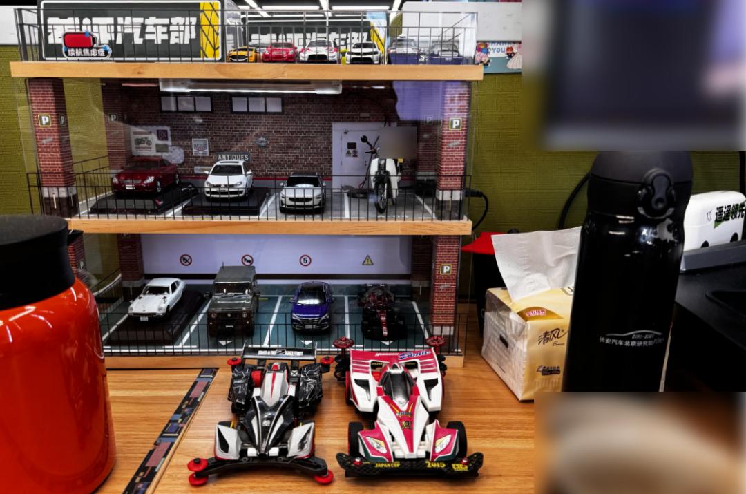 比如这位,桌面上放了气派的停车场,停满汽车模型得,一看就知道,是咱汽车部的同事。