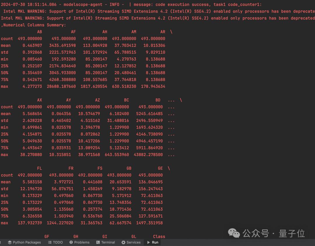 DS Assistant根据报错进行了反思,并重新生成代码并执行,成功输出数据探索的结果。